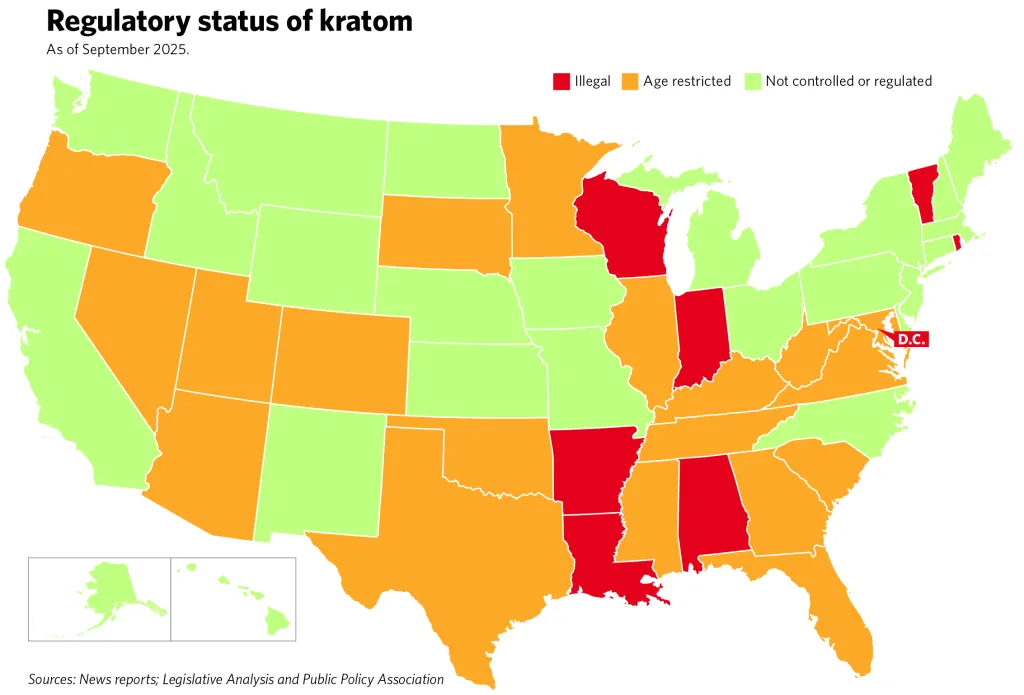 Currently, kratom and its derivatives are lightly regulated under a patchwork of state laws. Here in S.C., for instance, kratom sales were restricted to adults 21 and older under a law that went into effect on July 11 of this year.
